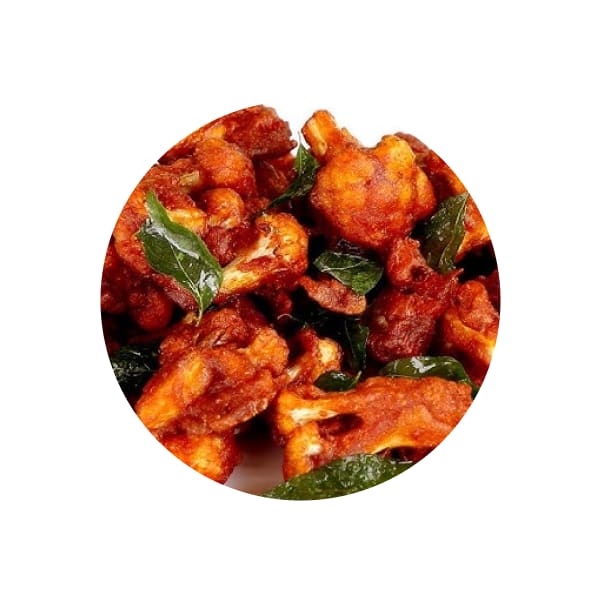 Gobi 65, Kerala-style, is a popular South Indian vegetarian appetizer that showcases the bold flavors of Kerala. Fresh cauliflower florets are marinated in a spicy batter made with rice flour, cornflour, and a blend of Kerala spices including red chili powder, turmeric, black pepper, and garam masala. A touch of ginger-garlic paste and curry leaves infuses the dish with a coastal aroma. The florets are then deep-fried to a golden crisp, delivering a satisfying crunch with every bite.